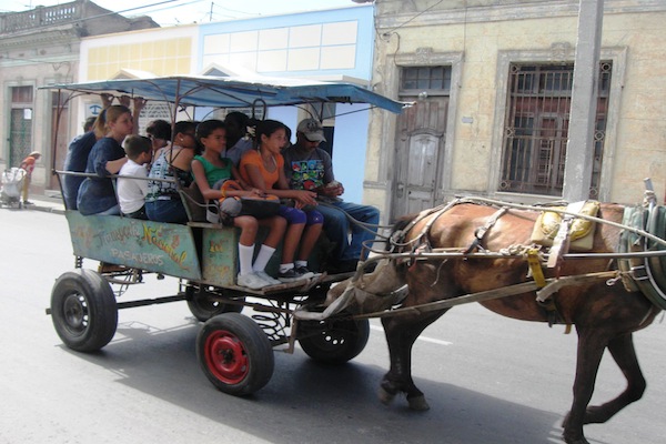 Tampoco es transporte urbano los cuatro caballos que mueven personas en Sancti Spíritus, Cienfuegos, Camagüey o Santa Clara.