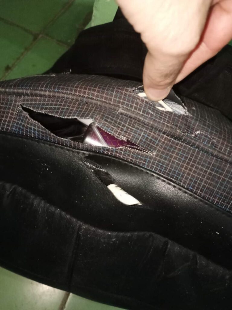 (Tomado del muro de Facebook del abogado Marcel Peraza Montes) La Habana.- La foto de esta publicación no es más que el resultado de mi mochila luego de ser sometida por varias rajaduras de algún ratero desconocido en el P11,…