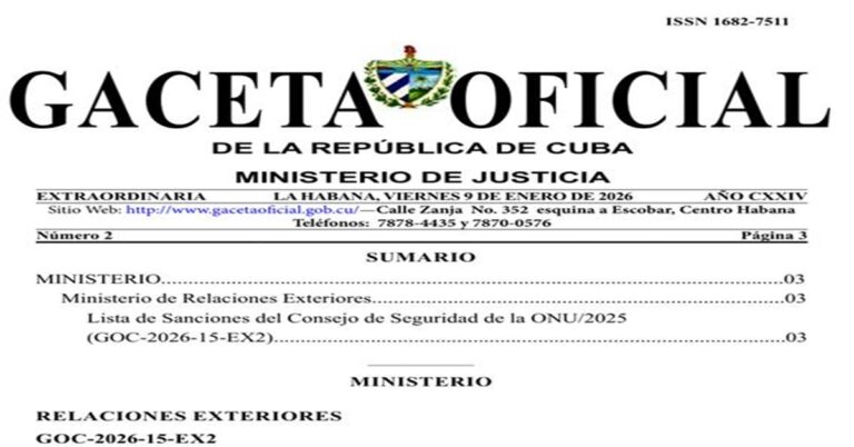 Por El Estado como tal La Habana.- La Gaceta Oficial de la República de Cuba publicó un documento inusual “para conocimiento general y consulta obligatoria” con listados de personas y entidades sancionadas por la ONU que incluyen altos funcionarios y…