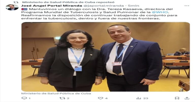 Por José Raúl Gallego Ciudad de México.- El ministro de Salud cubano José Ángel Portal posa sonriente junto a la directora del Programa Mundial de Tuberculosis y Salud Pulmonar, mientras en las cárceles cubanas los brotes de esta enfermedad son…