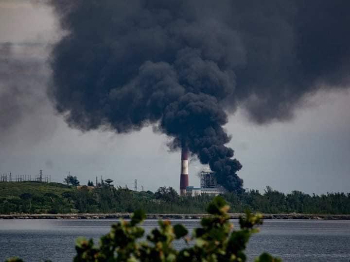 Según versiones en redes sociales de periodistas oficialistas, el tanque de combustible que arde contiene crudo cubano.