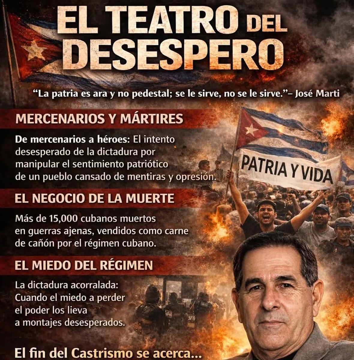 Houston.- Nada en una dictadura ocurre por azar. Cada acto público, cada ceremonia improvisada, cada discurso inflamado responde a un cálculo frío. La política del régimen cubano se ha convertido en una escenografía permanente donde el drama sustituye a la verdad y la propaganda suplanta a la justicia.