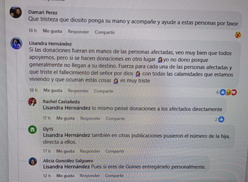 Mientras, en Revolico Güines, los vecinos organizaban colectas paralelas, también clandestinas, para comprar agua y ropa sin pasar por el filtro del Partido. «Aquí el que salva es el pueblo, no el Gobierno», resumía un comentario entre cientos