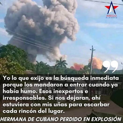 Por Alberto Arego Holguín.- La hermana de uno de las personas desaparecidas en la explosión de un almacén de municiones en el municipio Rafael Freyre, de Holguín, exigió a las autoridades la búsqueda inmediata de su hermano, Frank Antonio Hidalgo…