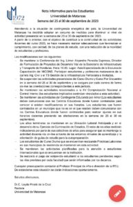 La comunicación explica a continuación las actividades que se mantendrán, conferencias de algún profesor, cursos de capacitación, y algunas otras relacionadas con prácticas laborales, por ejemplo.