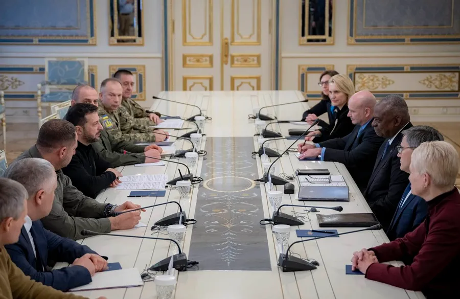 En su reunión con el presidente Volodímir Zelenski, Austin prometió una inversión inédita de 800 millones de dólares en la industria militar ucraniana para que Kiev pueda redoblar la producción de armamento de largo alcance con el que golpear a Rusia en lo más profundo de su retaguardia.