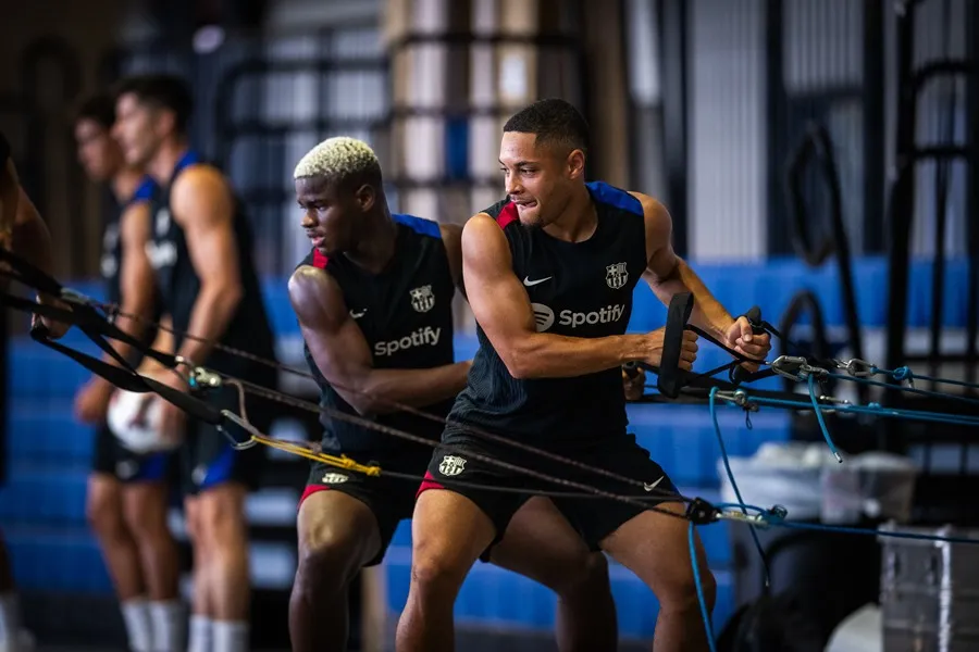 Los futbolistas convocados por Hansi Flick hicieron una sesión física en interior en la Academia Naval de Estados Unidos. El Barcelona realizará otra sesión de entrenamiento esta tarde en las mismas instalaciones.