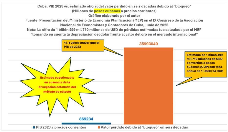 ¿Qué utilidad pudiera tener, que no fuese hacer propaganda, aplicar una operación estadística que genera un efecto acumulado del bloqueo 41 veces superior al tamaño de la economía cubana actual? Quizás algún funcionario pudiera ilustrarnos sobre eso.