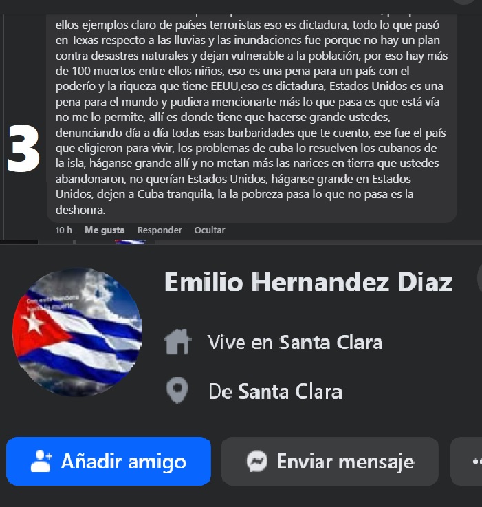 Miami.- Lo más revelador de este personaje no es solo su defensa servil de la tiranía castrista, sino el hecho de que lo hace desde un perfil sin rostro, con nombre dudoso, posiblemente falso, como tantos otros que pululan en redes sociales repitiendo el guion oficialista.