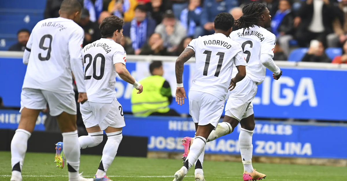 Madrid.- El Real Madrid se impuso este domingo por 1-0 al Alavés (17º) en Vitoria, en la 31ª jornada de LaLiga, pese a la expulsión del francés Kylian Mbappé en la primera parte, y se vuelve a colocar a cuatro puntos del líder Barcelona, que ganó el sábado por el mismo resultado al Leganés.