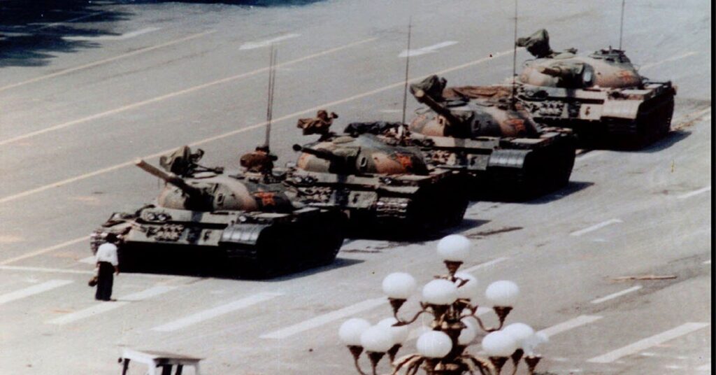 Solo, como el estudiante chino cortando el paso a un tanque de guerra en la plaza Tiananmén en aquel fatídico Junio de 1989.