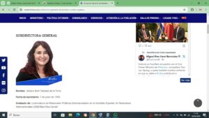 Parece que los denodados esfuerzos de Johana Tablada de la Torre, que sigue sin bajarse de la tribuna antimperialista, no le han servido para que la asciendan y permanece como subdirectora de la Dirección General de Estados Unidos; mientras lucha para que la nombren a orillas del Potomac y saborear Rabo encendido y Patipanza, en la Taberna del Alabardero, mirando a la Casa Blanca y sin apagones ni repellos de guagua, cuando pasan.