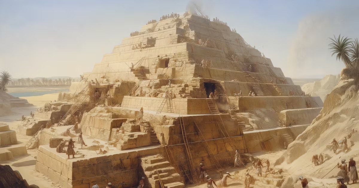 Recreación de la construcción de una pirámide escalonadaFran Navarro / Midjourney