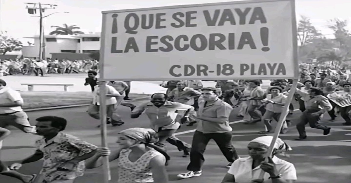 La Habana.- La imagen es en blanco y negro, pero podría haber sido tomada ayer. Un grupo de personas marcha con un cartel que reza “¡Qué se vaya la escoria!”, firmado por un CDR y con falta de ortografía. El contexto es de décadas atrás, en plena euforia de los llamados actos de repudio, cuando el régimen movilizaba a vecinos contra otros vecinos, legitimando el odio como política de Estado. Sin embargo, aunque la fotografía pertenece al pasado, el mensaje sigue vivo en la Cuba de hoy: estigmatizar a quien piensa distinto, señalar al que se va, ridiculizar al que reclama libertad.