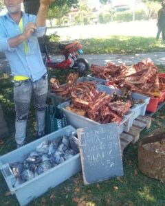 Esos huesos metido en cajas sucias, tirados después sobre el césped, el cemento o la tierra, y cargados cualquiera sabe cómo, van destinados a la población. Tal vez esos huesos sean la mejor -o única- fuente de proteínas a las que tengan acceso los dichosos que puedan adquirirlos.