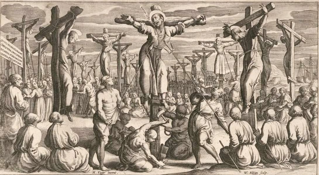 (La imagen es un grabado de 1628 de la ejecución de los 26 Mártires)