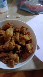 Estamos monotemáticos solo hablamos de comida. Empiezo a no soportarme. Mis fotos del agro no tienen que ver con tus fotos de ese mercado que vas. Tus fotos son lindas, todo perfecto. A mi vecina le entusiasma la grasa del puerco. Ya se ha comprobado que no hace daño, no sube el colesterol, ahora que comer carne de puerco es un lujo. La grasa del puerco marca la diferencia de comer mejor o peor.