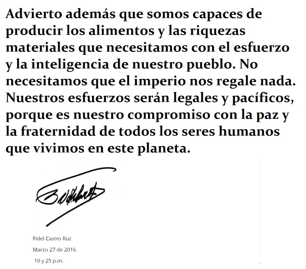 NOTA: La imagen y texto que aparece con la firma de Fidel Castro, corresponde a la reflexión de Fidel » El hermano Obama» publicada 3 meses después de la visita de Barack Obama a Cuba.