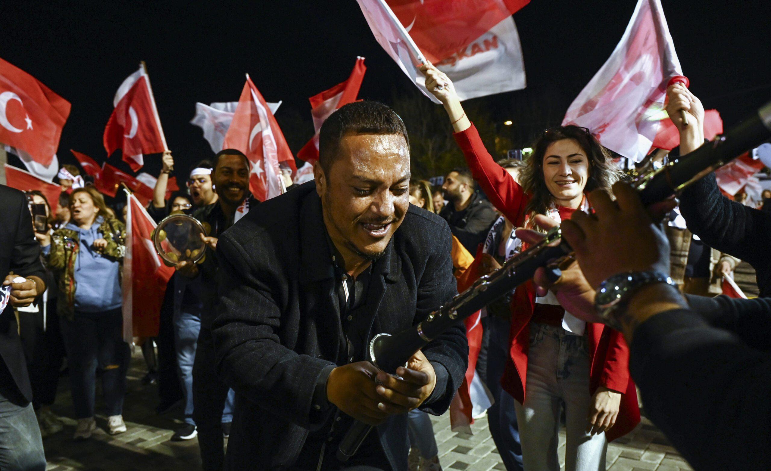 En otras partes de Ankara, miles de simpatizantes más habían ondeado banderas turcas y de partidos durante un discurso del alcalde reelegido del CHP, Mansur Yavas, quien derrotó a su rival del AKP en otra decepción para Erdogan.