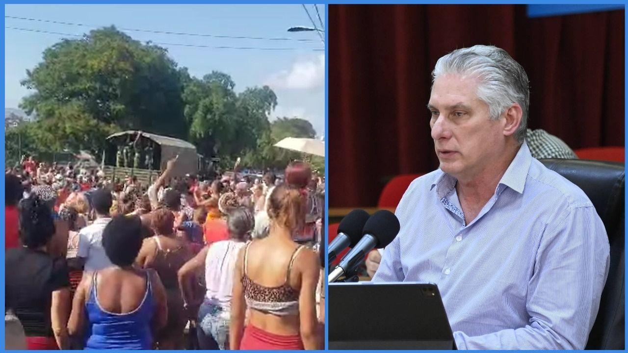 Aclaró que, «por otra parte, era un domingo muy caluroso. Yo creo que esa acumulación y esa coincidencia de circunstancias (Incluye el calor)… que agobian a determinadas personas, facilitó que un grupo de personas, de tres localidades del país, que son, además, localidades con mucho símbolo en nuestra historia… Un distrito de Santiago de Cuba, no fue en todo Santiago de Cuba, un barrio de Bayamo, y el otro que fue más numeroso, en la localidad de El Cobre, en Santiago de Cuba, se reunieron personas en el orden de 200, 500 en un lugar, y alrededor de 100 en el otro, que en lo fundamental fueron buscando la explicación, la argumentación y la queja… la respuesta a la queja, que tenían fundamentalmente con dos temas fundamentales: la electricidad, los apagones prolongados y la carencia de alimentos».