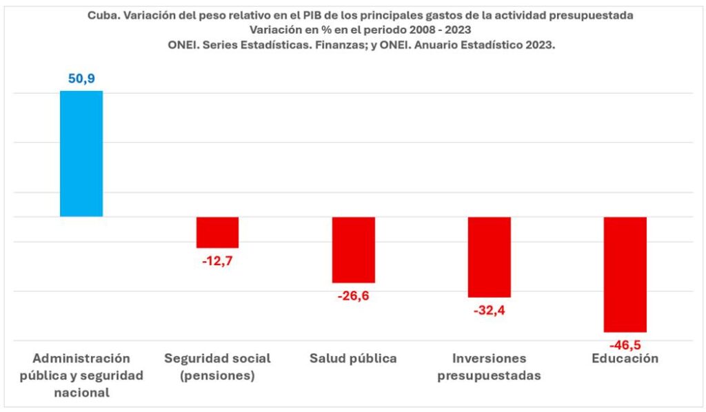 La transición hacia la austeridad fiscal en Cuba no ha sido homogénea a nivel de sectores sociales. La dispar dinámica del gasto presupuestario ha beneficiado a burócratas y militares y ha perjudicado a educadores, personal de salud, vulnerables y jubilados.