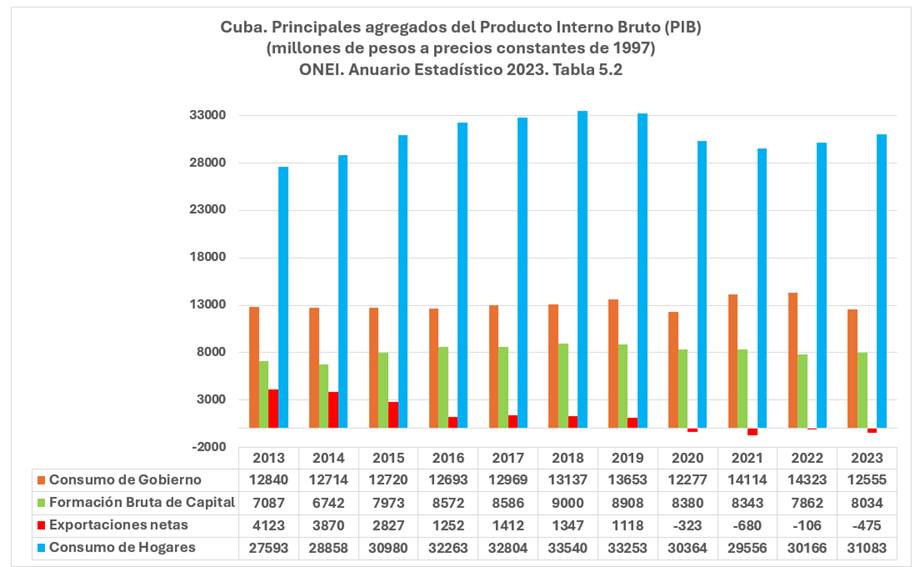 La contracción del gasto presupuestario ayuda a reducir el déficit, pero también tiende a erosionar el efecto positivo que tradicionalmente ha tenido en Cuba el “gasto de gobierno” en el crecimiento del PIB. Ese gasto es el segundo mayor factor de la demanda global.