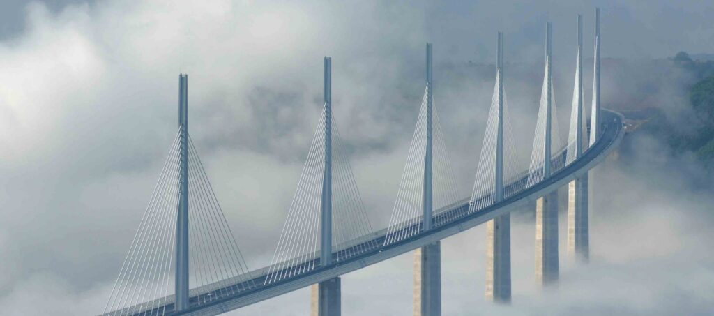 El puente más alto del mundo, con pilares que superan la Torre Eiffel en altura. Diseñado por Norman Foster, esta maravilla de la ingeniería cruza el valle del Tarn y es una obra maestra de elegancia y funcionalidad.