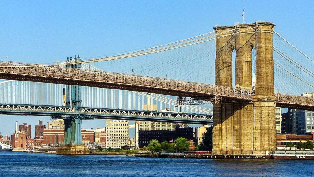Inaugurado en 1883, este puente colgante fue una hazaña de la ingeniería del siglo XIX. Con sus torres neogóticas y cables entrelazados, conecta Manhattan y Brooklyn, siendo un ícono de la ciudad que nunca duerme. Su pasarela peatonal ofrece vistas inigualables del skyline neoyorquino.