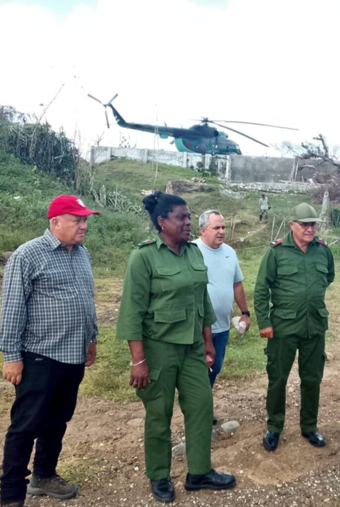Bajaron del helicóptero como si fueran los Mesías. La primera secretaria del PCC en Santiago de Cuba y su séquito de cortesanos, enfundados en su ropa impecable, llegando a las zonas devastadas de Palma Soriano, San Luis y Songo-La Maya. No llevaban soluciones, no llevaban esperanza. Llevaban cámaras, discursos vacíos y la insolencia de repartir, como si fuera un maná celestial, la mísera y famélica canasta familiar normada que corresponde… ¡al mes de julio! Tres libras de arroz, dos de azúcar y seis onzas de chícharos. Ese es el valor que este régimen le da a la vida humana.