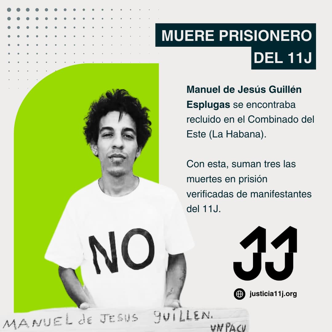 La Habana.- Justicia 11J ha conocido de la reciente muerte en prisión del manifestante del 11J, promotor de Cuba Decide y miembro de la UNPACU, Manuel de Jesús Guillén Esplugas, quien se encontraba recluido en la prisión Combinado del Este, cumpliendo una sanción de seis años de privación de libertad.