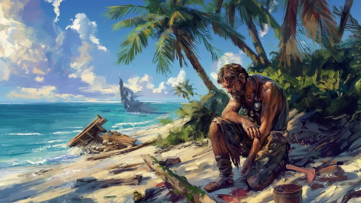 Recreación de Pedro Serrano en la isla desierta. Fran Navarro / Midjourney