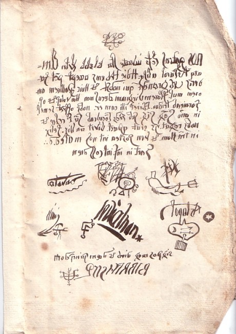 Más tarde, el demonio Leviatán (hablando a través de la boca de la Hermana Jean de Agnès) le dijo al obispo inquisidor que mirara sus pies. En el suelo, junto a él, el obispo encontró el propio documento. Estaba escrito en latín al revés y firmado no solo por Grandier y una multitud de demonios. También estaba firmado por Satanás mismo. Con tal evidencia abrumadora de su culpabilidad, Grandier estaba condenado.