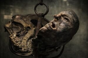 Hay dos versiones, y las dos son igual de inquietantes. Una dice que los que acompañaban al viejo en su último paseo reían a carcajadas, para disimular, para hacer el rito más llevadero, vaya usted a saber. La otra es más retorcida: les daban una planta tóxica que deformaba la cara en una mueca parecida a una sonrisa. Así que el pobre anciano se iba al otro barrio con la cara partida en dos como si le acabaran de contar un chiste malo. De ahí nació lo de la «risa sardónica»: una sonrisa que no es sonrisa, sino un espasmo de la muerte.