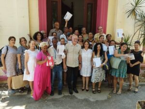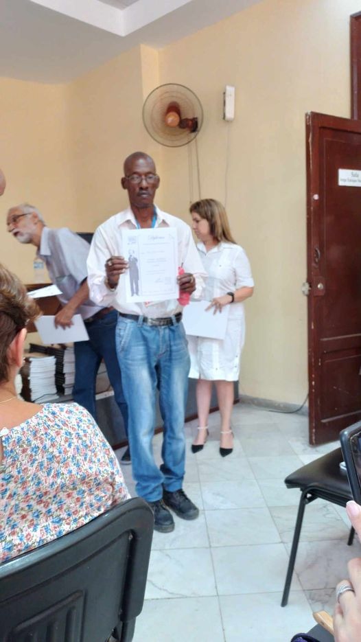 Carrero, a la izquierda, en la foto, del presidente de la UPEC, Ricardo Ronquillo Bello, quien se quedará sin afiliados en cualquier momento, porque nadie quiere trabajar ya en los medios del castrismo, primero porque lo que pagan es una miseria, y segundo porque la mayoría de los periodistas serios tomaron el camino de los volcanes o cualquier otro rumbo y se fueron a buscarse la vida honradamente en otro lugar.Pues Carrero Texidor se enteró de que Cubadebate iba a realizar un curso de reorientación, similar a otro anterior que hizo la UPEC a finales del siglo pasado, y se enroló. Cuando comenzó el curso, los entonces estudiantes recibieron una charla motivadora de Randy Alonso, quien les dijo que los dos primeros en el escalafón al terminar las clases, pasarían a formar parte del consejo de dirección.Era la oportunidad que esperaba Carrero Texidor. Apeló a todo lo aprendido durante años como reportero en diferentes emisoras de la capital en Prensa Latina, en la AIN -o Agencia Cubana de Noticias, para que no se molesten sus directivos- y resultó ser el de más alta puntuación.