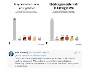 En Alemania, por ejemplo, el último y grotesco caso de la “democracia europea” se observó en el estado federado de Renania-Palatinado, donde al candidato a la alcaldía de Ludwigshafen por la AfD, Joachim Paul, se le prohibió postularse a la alcaldía debido a un informe de la agencia de inteligencia interior alemana BfV, con afirmaciones acerca de que la creencia de este señor de que la trilogía de El Señor de los Anillos de Tolkien reflejaba «valores conservadores» era una especie de «peligroso» mensaje nacionalista.
