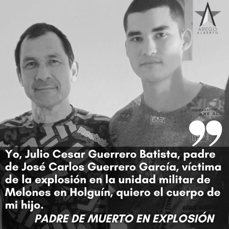 Por Alberto Arego La Habana.- “Yo, Julio César Guerrero Batista, padre de José Carlos Guerrero García, víctima de la explosión en la unidad militar de Melones en Holguín, digo que es una gran mentira porque nunca se inició la búsqueda…