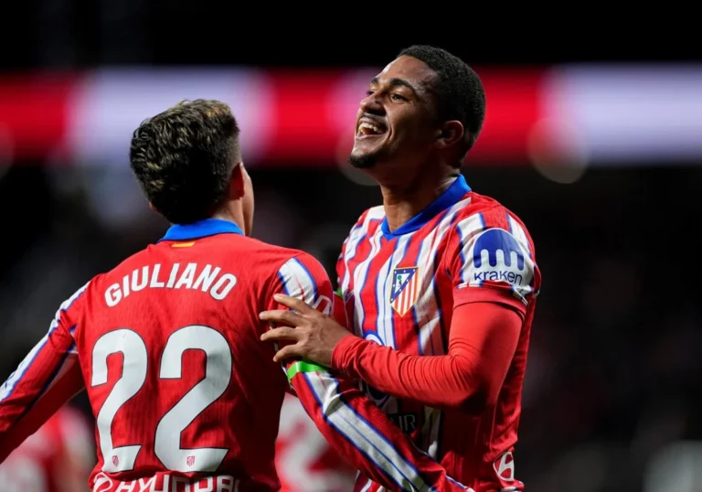 Madrid.- Al borde del tropiezo en buena parte del segundo tiempo, el Atlético de Madrid solventó una victoria imprescindible por una jugada de Giuliano Simeone, un gol de Samuel Lino, dos largueros de Sergi Darder, el sufrimiento hasta el final…