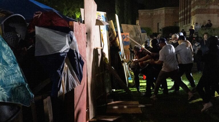 Redacción Internacional Los Ángeles.- La policía desalojó por la fuerza a decenas de manifestantes pro palestinos desafiantes en varias universidades el jueves, incluido el desmantelamiento de un campamento en UCLA, en una escena discordante que subrayó el caos intensificado que…